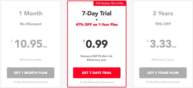 您可以选择每月 10 美元的 1 Mbps 速度上限帐户或每月 20 美元的无上限计划。您已被完全加密和隐藏。